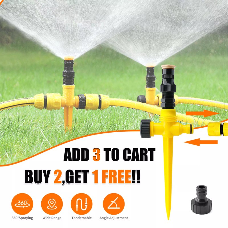 - 360° Rotation: You can adjust the angle at will to spray irrigation to every corner of your garden. (Spray diameter is related to water pressure; the higher the water pressure, the larger the irrigation area).