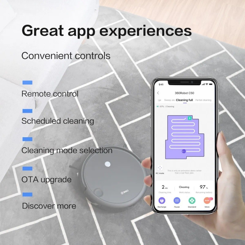 Contar con una aspiradora robot te permitirá ahorrar tiempo y esfuerzo. Es la solución para que la limpieza de tu casa se realice con mayor frecuencia y puedas mantener los ambientes impecables siempre. La 360 C50 hará la tarea por ti.