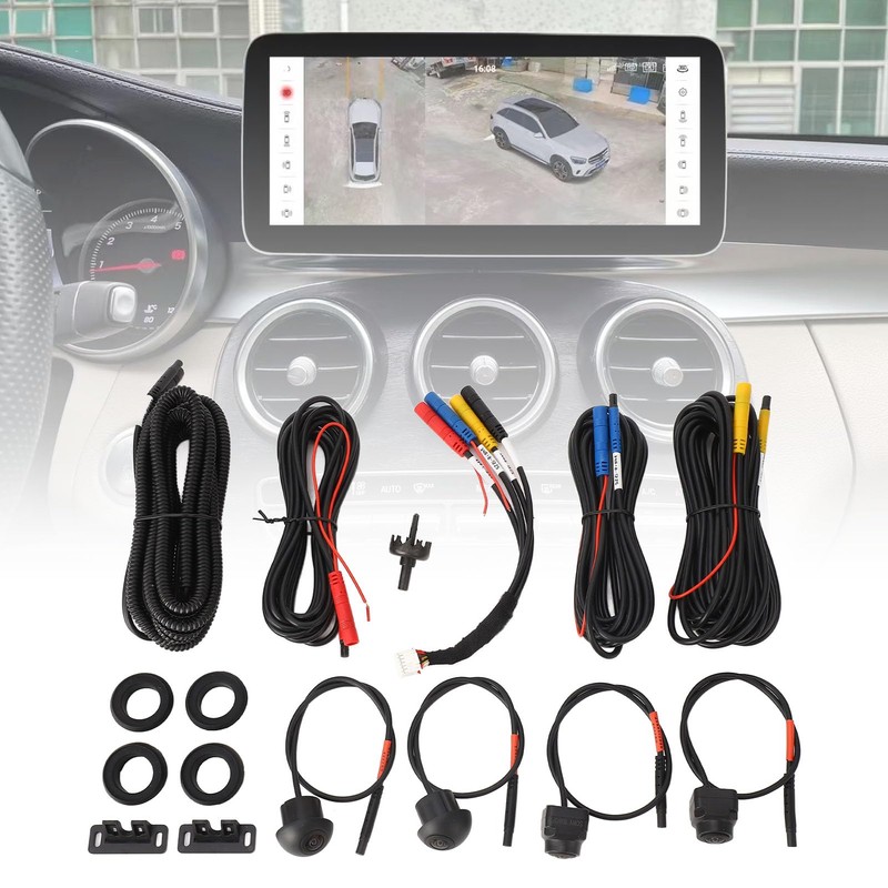 - [All-round Vision]:Enhance your driving experience with a 360 degree car camera system that provides a panoramic view of four cameras and eliminates blind spots.