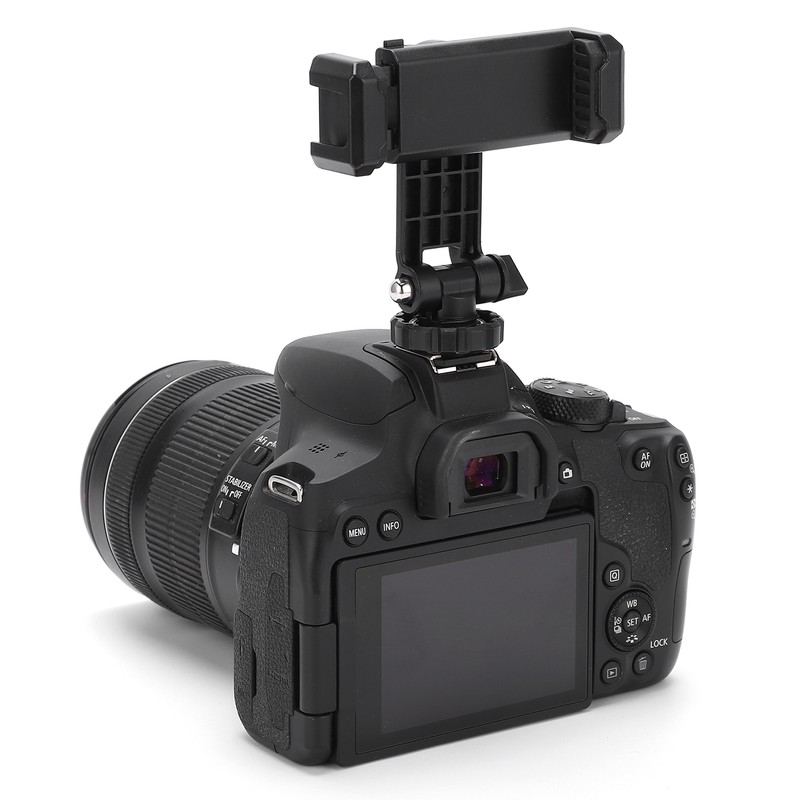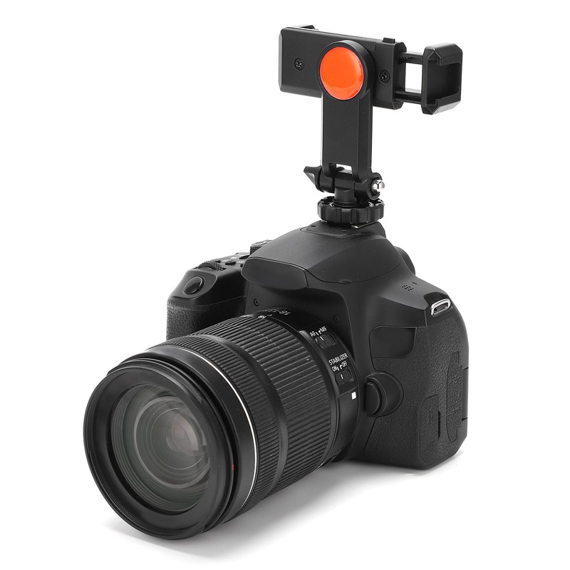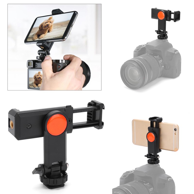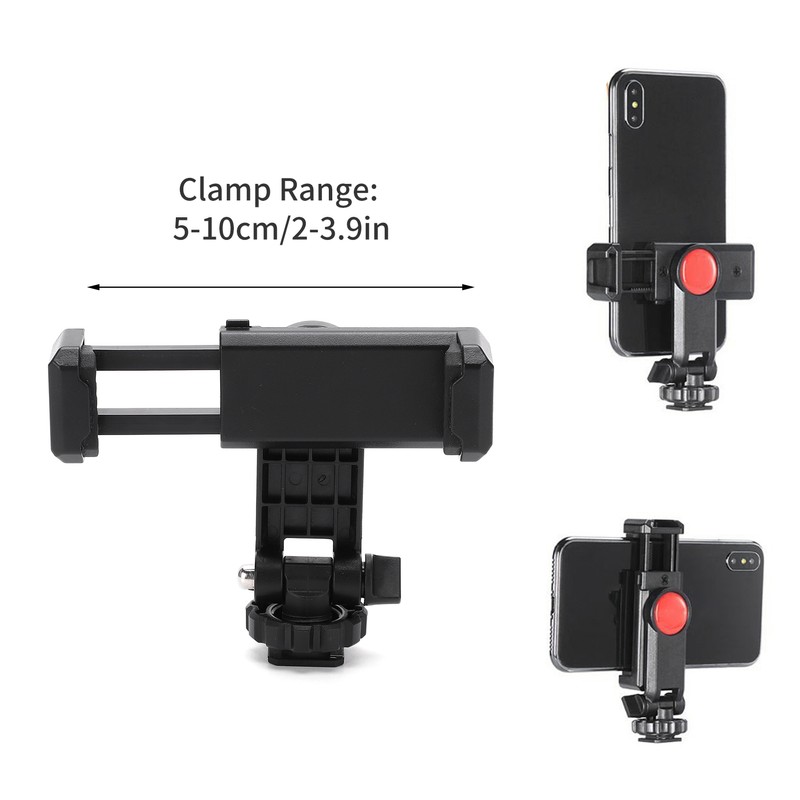1、There are two 1/4in universal screw holes universal to all tripods and other equipment. 2、The upper part of the cold shoe design, can fix microphone, photography lights and other equipment. 3、Adopt 360 degree rotation design to support various angles of shooting, supporting horizontal and vertical shooting. 4、It also has a cold shoe holder lock that can be fixed on the hot shoe mouth of the camera, and the mobile phone can be placed on the camera. 5、No need ballhead, adjustable angle design allows you to be fixed on a tripod or camera hot shoe to adjust the angle without the need for a small ballhead.