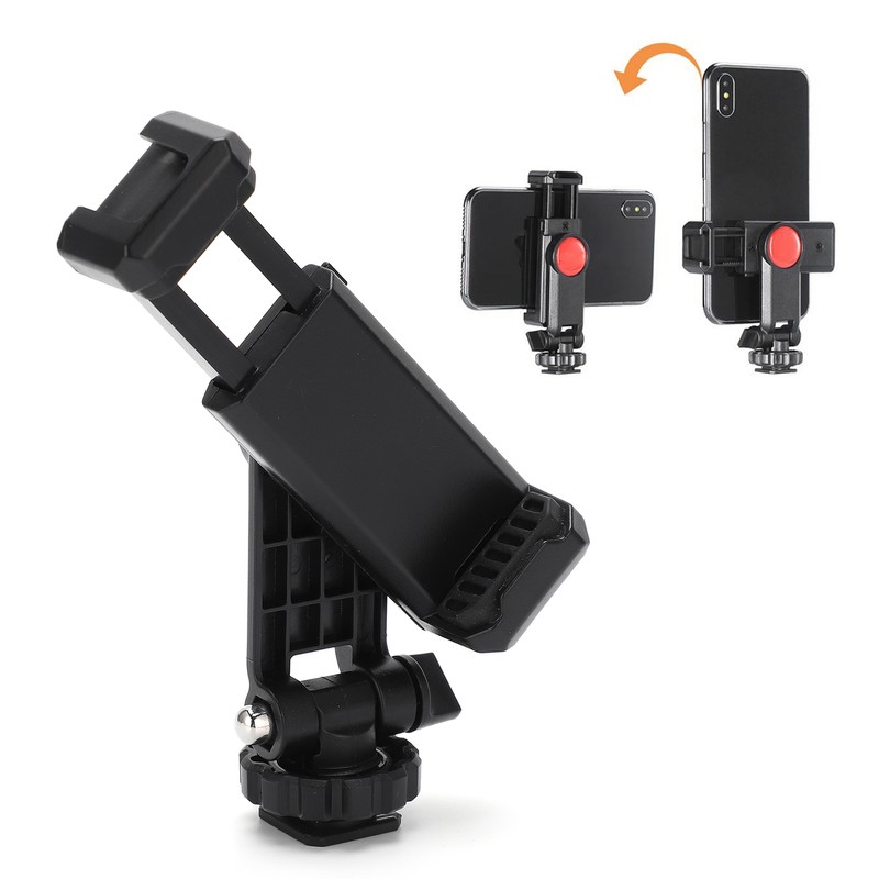 360 Degree Rotation Phone Holder Phone Mount Clamp Clip With Cold Shoe 1/4in Screw Hole