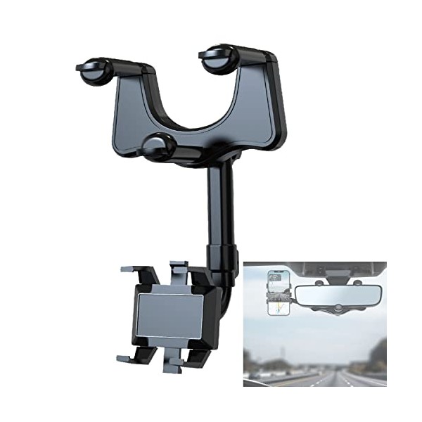 - 【One-hand Safe Operation】You can place or take the phone with one hand when driving, easy to adjust the cellphone to horizontal or vertical screen. It is convenient to answer the phone, play music, gps positioning during the riding.No More Looking Down at Navigation The phone holder is mounted on the car's rearview mirror and levels. No need to look down at navigation, and get a more comfortable user experience.