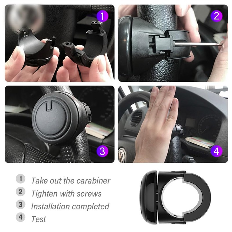 - [Easy Installation and Use]: We provide 3 black screws and a hex wrench. Simply move the separate knob and clamp to the desired position, insert the screws through the side holes, and tighten them with the hex wrench to secure the installation. Note: After installation, please test the stability of the steering wheel knob while the car is stationary.