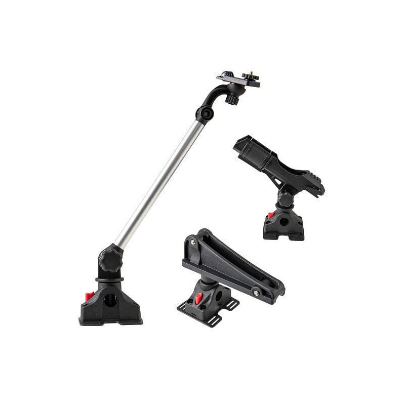 Specifications: Color Black Material PVC Metal Maximum Height of the GoPro Mount 20" Size of the Fishing Rod Holder 1.5" x 9.5" Size of the Oar Holder 1" x 8.5" Size of the Bracket 4" x 2" Net Weight 3.5 lbs Box Qty 1(May vary by batch)