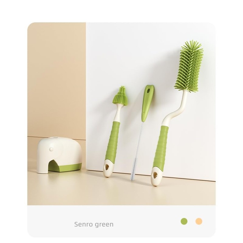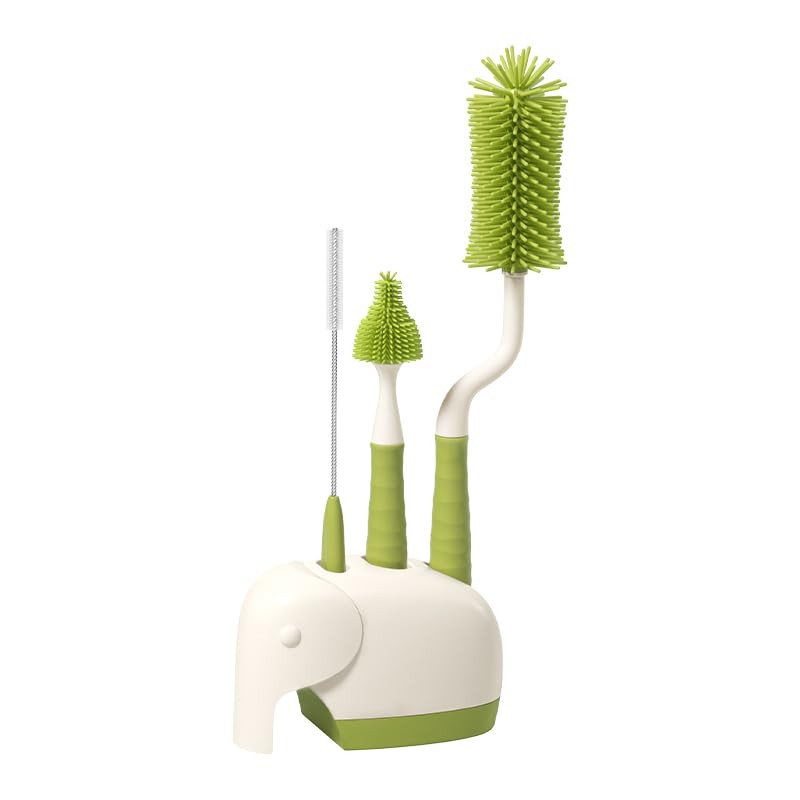 360° Rotating Silicone Bottle Cleaning Brush Set, Includes Baby Bottle Brush, Nipple Cleaner, Straw Brush and Drying Stand. (Green)
