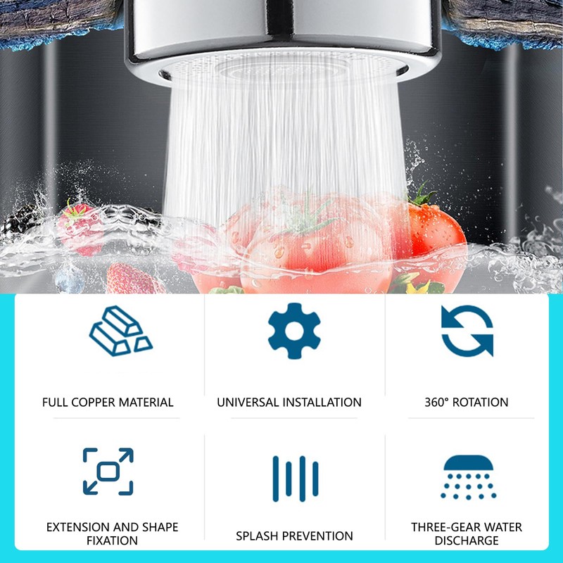 This kitchen tap spray head is designed to enhance your sink's versatility with a 360-degree swivel faucet aerator and three functional water flow modes—bubble, boost, and mixed. Whether you're rinsing delicate produce or tackling greasy dishes, the adjustable water pressure helps you get the job done efficiently.