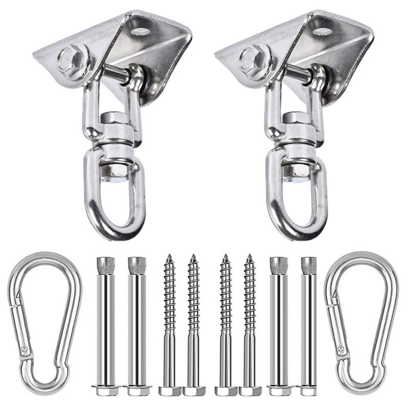 360° Swivel Swing Hangers for 1200lb Heavy Duty in 304 Stainless Steel, Swing Hook Set Fits Wood & Concrete for Yoga, Hammock, Trapeze, Boxing Sandbag Lifting Rope and Playground Suspension Equipments