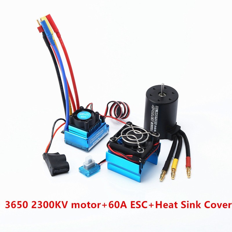 3650 2300KV Brushless Motor & with 60A ESC & Heat Sink Cover Combo Replacement for HSP HPI Wltoys 1:8/1:10 Remote Control Car and Boat Part