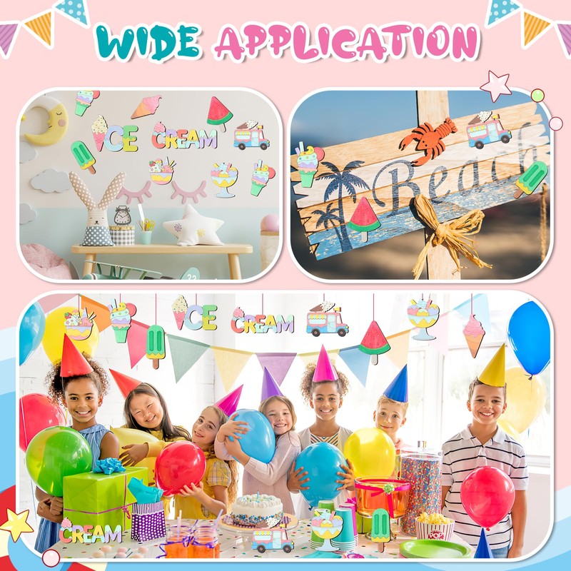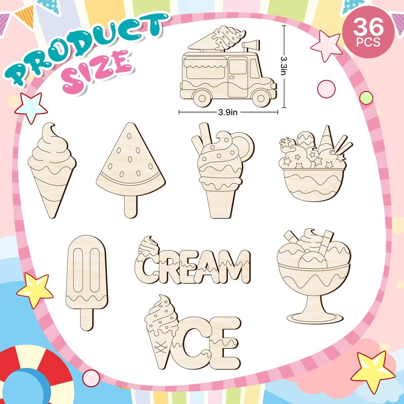 - Attractive Ice Cream Designs: Find these super cute wooden cutouts for your Ice Cream or summer party, home craft, or class! from ice cream cones to refreshing popsicles, these cutouts exude coolness and cuteness this summer, come with an ice cream summer tattoo stickers kit, and contain many fun elements that kids will like