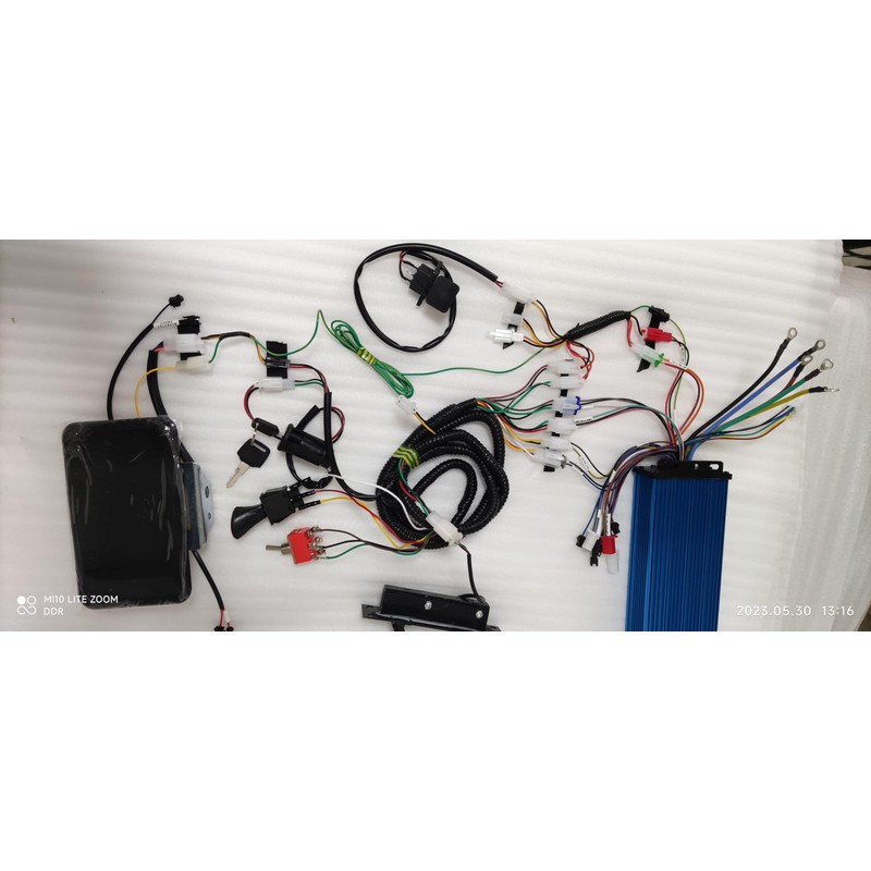 - Complete All-in-One Kit – Includes: 1x controller, 1x LCD display, 1x ignition key switch, 2x wiring harness, 1x throttle grip, 2x brake levers (left & right), 1x air switch, 1x charging port, 1x terminal block, 1x 3-speed switch – everything you need for a DIY build or upgrade.