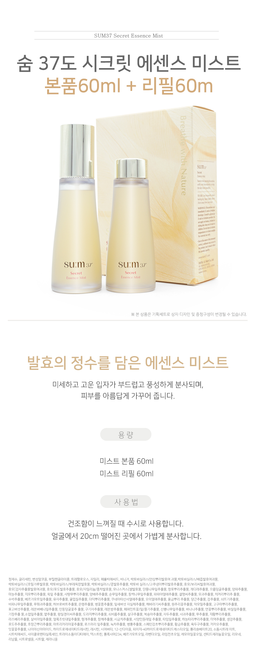 숨37도 시크릿 에센스 미스트 60ml + 60ml (본품+리필)