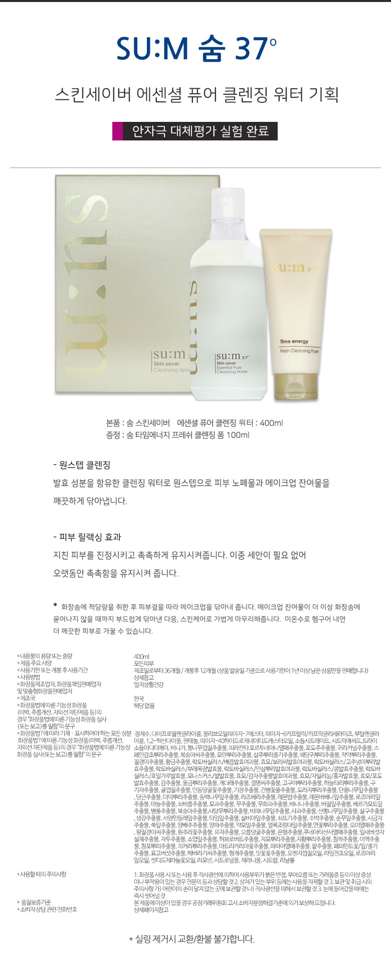 숨37도 스킨 세이버 에센셜 퓨어 클렌징 워터 기획세트(폼 기획) 본품 400ml+클렌징 폼 100ml">