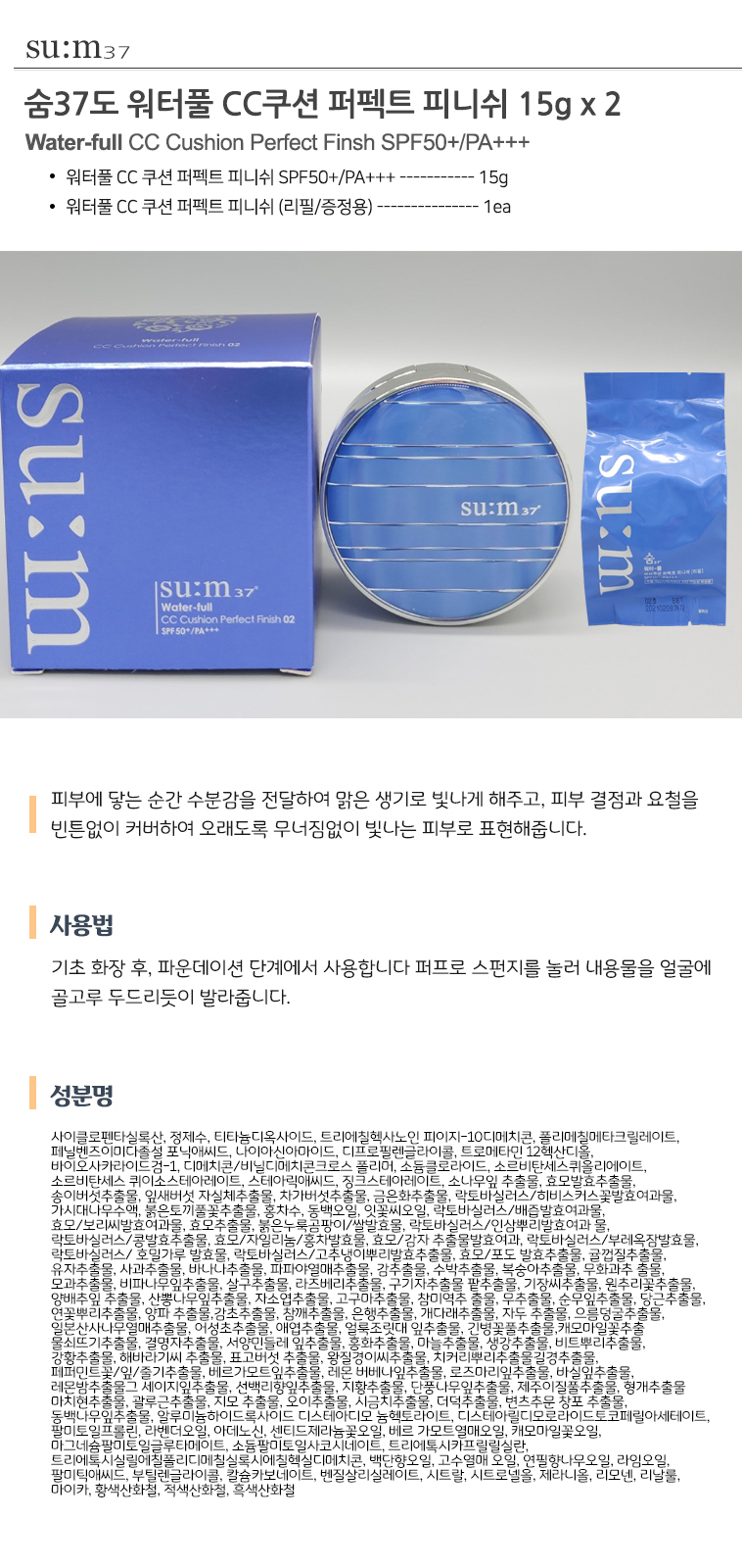 숨37도 워터풀 CC쿠션 퍼펙트 피니쉬 15g x 2ea