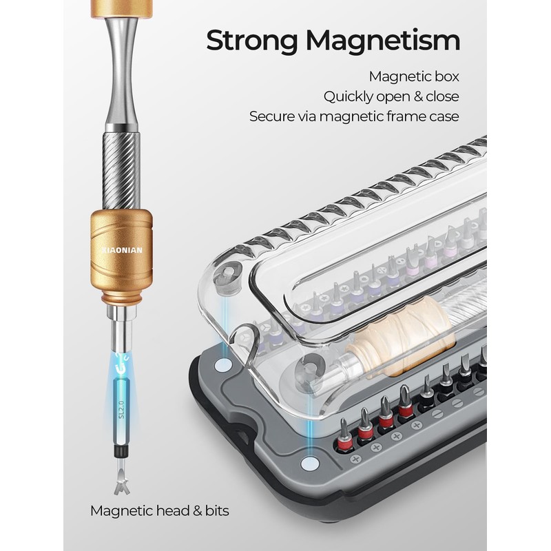 Professional Magnetic Driver Handle: XIAONIAN 37 in 1 magnetic screwdriver set features a low center of gravity design with a drum-shaped ergonomic grip for precise control and comfort during use, enhanced with a smooth rotating cap for efficient screw driving mini screwdriver micro screwdriver set eyeglass screwdriver flat head screwdriver watch screwdriver set.