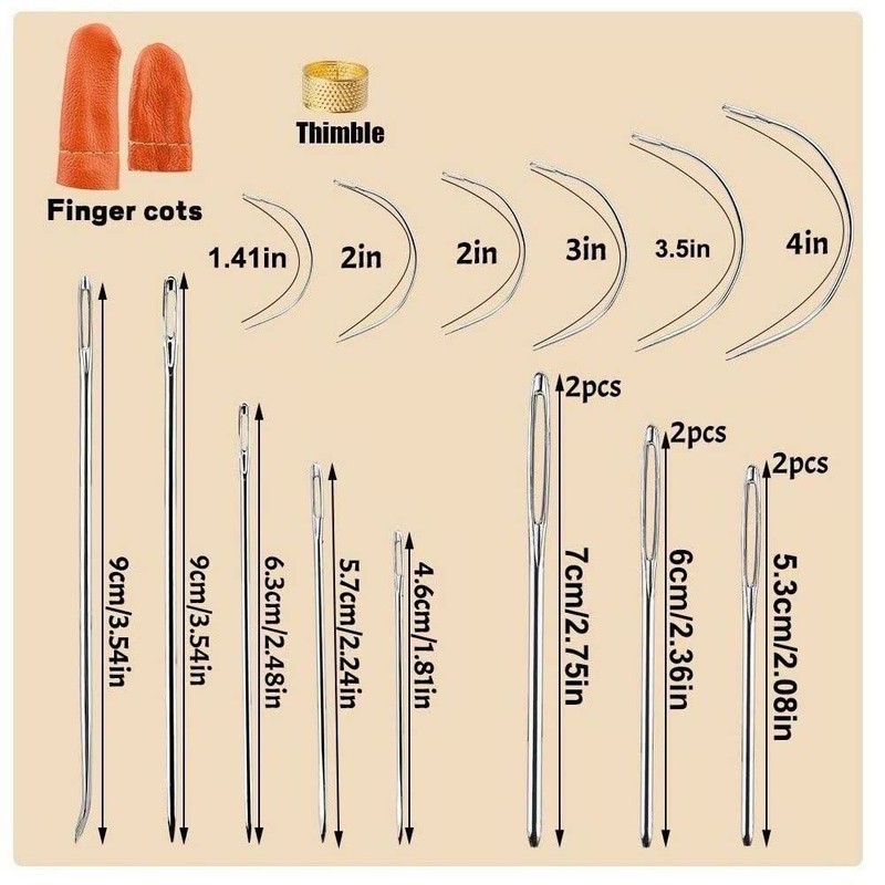 - 【37PCS LEATHER REPAIR KIT INCLUDES】14 x waxed thread, 11 x leather stitching needles, 3 x large-eye stitching needles, 2 x stitching awl, 1 x sewing seam ripper, 1 x sewing thimble, 1 x yarn scissors, 2 x finger sleeves, 1 x 2/4 prong punch tools, every notion in the leather kit is made up of high-quality making basic repairs.