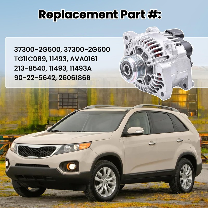 37300-2G600 110A 12V Alternator Compatible with Hyundai Santa-F-e 2006-2012 2.4L; Compatible with K-I-A Sorento 2009-2012 2.4L; Part Numbers: 11493N, TG11C089