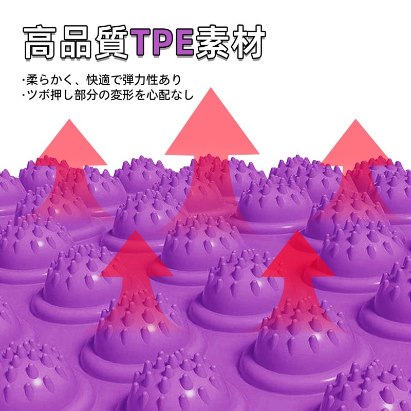 - 【強化された指圧体験】足ツボマット-足の裏に施された高反発粒子デザインが経穴を正確に刺激し、持続的な足マッサージ体験を提供します。また、表面は滑りにくい加工が施されており、ご家庭でも簡単にお使いいただけます。お年寄りや子供も安心して使用できます。活力を与える効果を堪能できます。