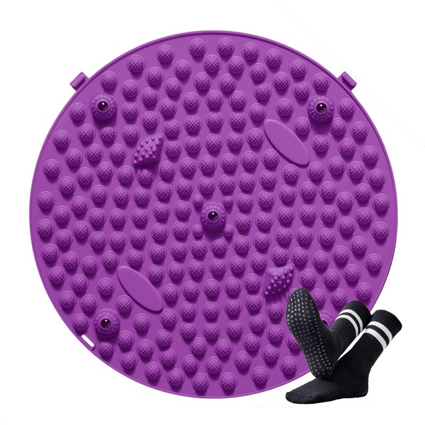 足ツボマット 指圧ボード 直径37CM 足裏マッサージ 足つぼマット 足ツボ押し 足踏みマット 指圧マット 人間工学指圧パッド 運動 マッサージ 足のリラックス 折りたたみ コンパクト 指圧板 家庭用 円形 ヨガソックス付(パープル)