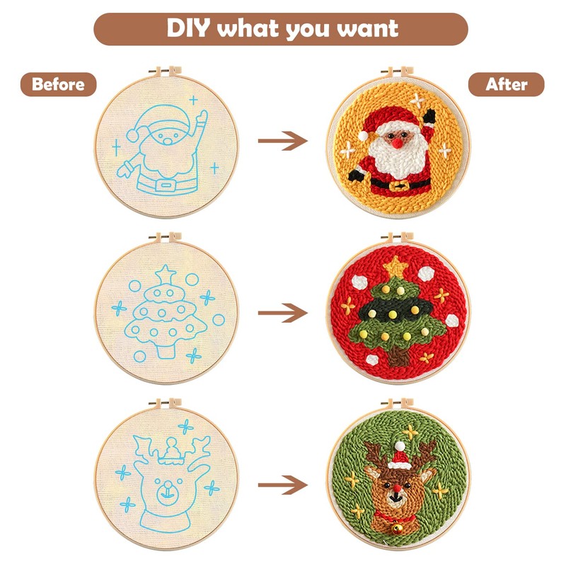 - 【Versatile Applications】 This embroidery kit comes with various needle sizes, perfect for embellishing everyday items such as clothes, hats, towels, quilts, rugs, pillows, wall hangings, and other decorations.