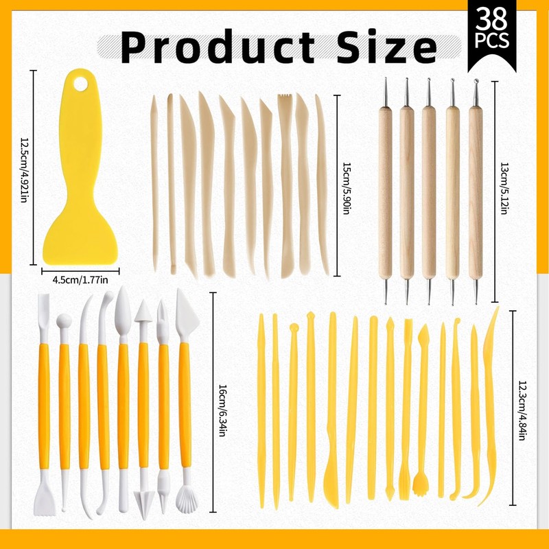 - Complete Tool Kit: Includes 38 pieces of diverse clay tools for sculpting, carving, modeling, and shaping air-dry clay, ceramic, and pottery.