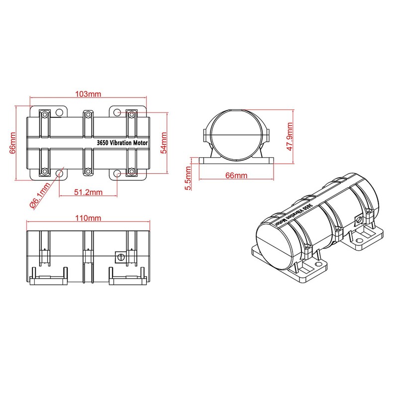 - [Package and Parameters]:Rotational Speed:3800rpm; Power: approx. 6 W; rated current 0.3 A, torque 0.01 N. m, size: 110 x 66 x 48 mm, you will receive a small 24 V vibration motor