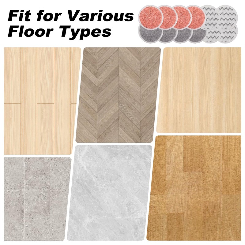 • 【Excellent function】: 4 kinds of material steam mop pads can be choised,suitable for all kinds of floor, such as Hardwood, marble, tile, stone, laminate, vinyl. Easily remove stains on the ground.High quality microfibers make it easy to clean stains and hair that remain on the floor. Super friction, can easily remove kitchen, balcony, entrance stubborn sticky stains.