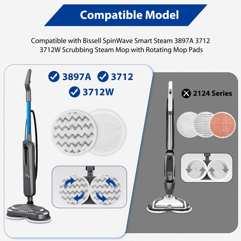 • ONLY Fit for 3987A Mop--- Designed specifically for Bissell SmartSteam models3897A / 3712 / 3712C 3712W ONLY. Please confirm the model of your mop before placing an order to avoid delaying your cleaning progress. These pads will NOT fit any other Bissell or third-party steam mops