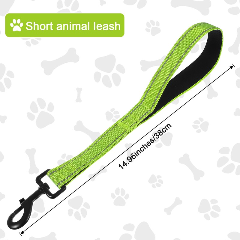 38cm Short Dog Leads Heavy Duty Chew-Resistant Pet Leash Nylon Leashes Walking Reflective with Traffic Padded Handle and 360° Swivel Clip Strong for Small Medium and Large Breeds(Green)