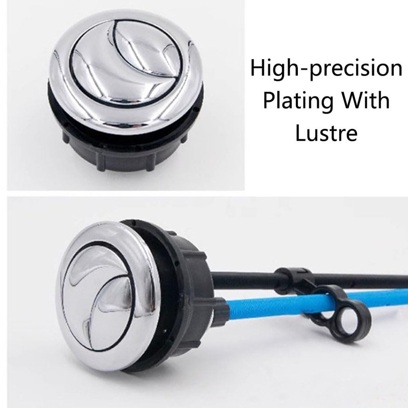 - Durable Material Made of high quality ABS plastic with chrome plating, the toilet double push button replacement provides excellent acid, corrosion and rust resistance to ensure long term durability. Bright metallic finish adds functionality and beauty, great for home, hotel or other bathrooms