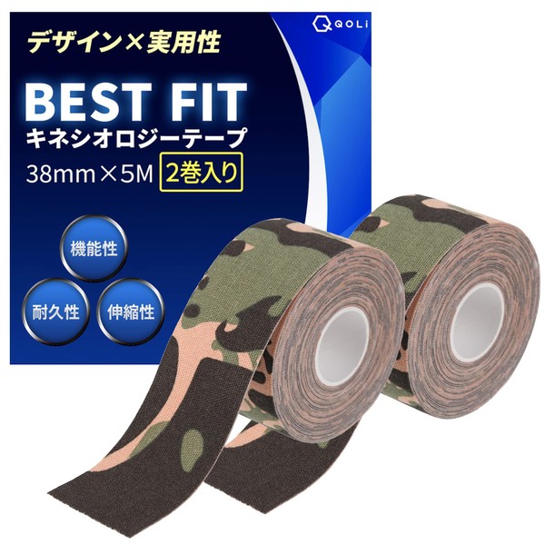 【現役整体師監修】 テーピング キネシオ 38mm × 5M 2巻入 保護 汗に強い 伸縮 スポーツ 運動 筋トレ テーピングテープ キネシオロジーテープ 関節 3.8cm幅 (迷彩)