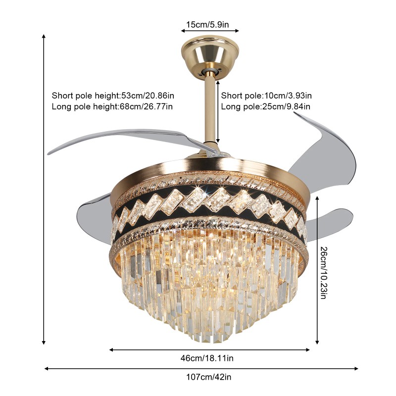 38W Modern 3-colour Round Inch Ceiling Fan Light With Remote NEW