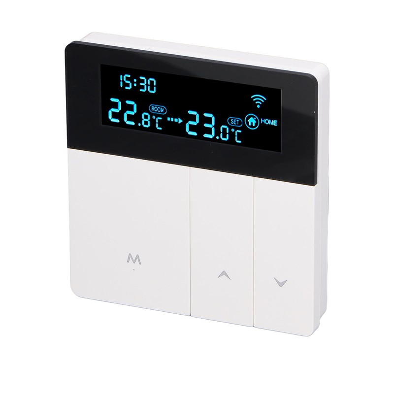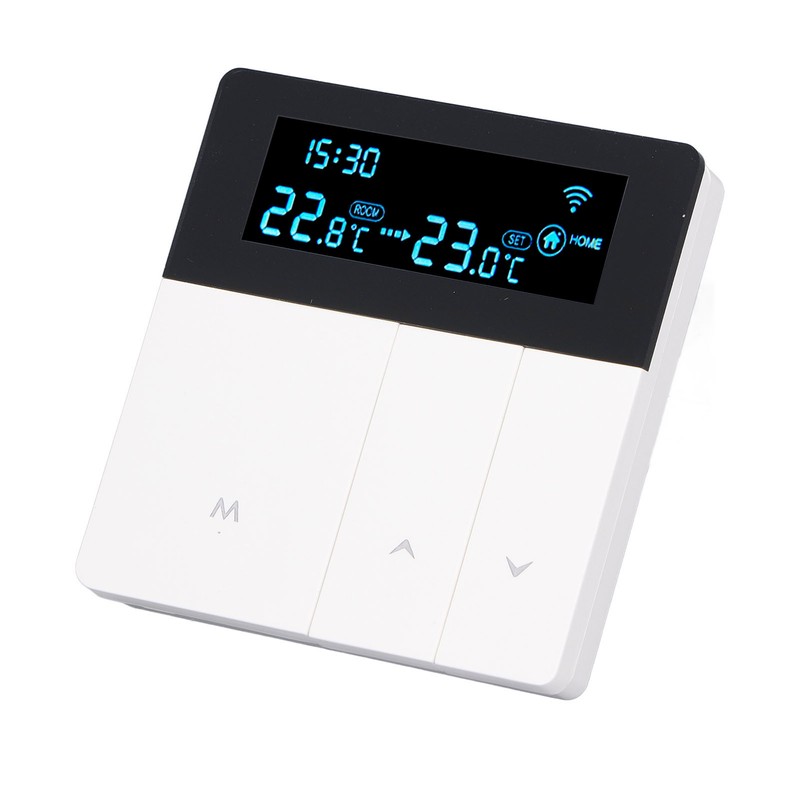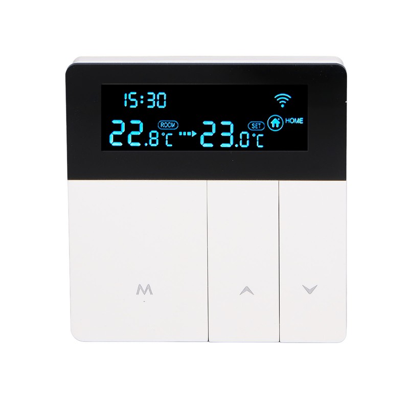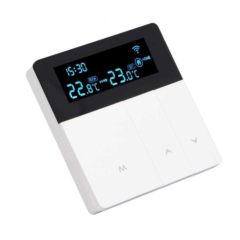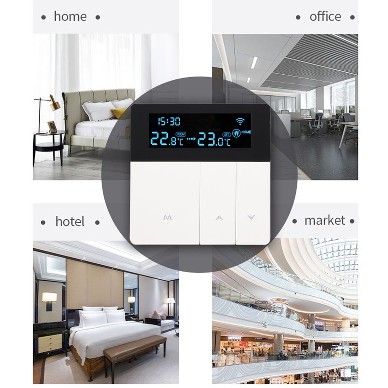 1、LCD Display: The smart thermostat is equipped with a color LCD display, which clearly shows the current room temperature, set temperature, and operating modes, providing intuitive and convenient operation. 2、Programming Function: With the programming function, users can set different temperatures for different time periods according to their needs. It intelligently controls the heating system, enhancing comfort while saving energy. 3、Precise Temperature Control: Designed for smart homes, this thermostat can accurately control the temperature of floor, avoiding overheating or chilling, and providing a comfortable indoor environment. 4、Durable and Stylish: Constructed with PC flame retardant material and featuring an IP20 protection level, this thermostat is safe and durable. Its exquisite appearance not only offers practicality but also adds a decorative touch, enhancing the aesthetics of any space. 5、Wide Application: This thermostat is suitable for various places such as homes, offices, shopping malls, hotels, and nursing homes. It meets the temperature control needs of different spaces with heating systems.