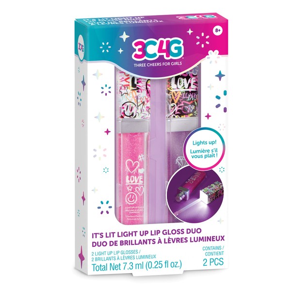 3C4G It's Lit! Light Up Lip Gloss Duo - Glitter Lip Gloss for Kids with Up Lid & Wand - 2 Pack Kids Lip Gloss Set - Strawberry Flavored Lip Gloss for Girls 8-10-12-14 by Make It Real