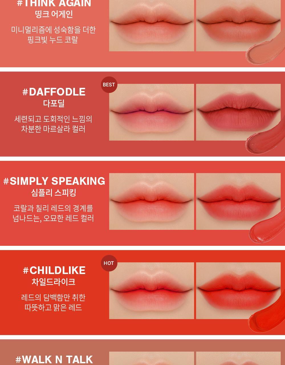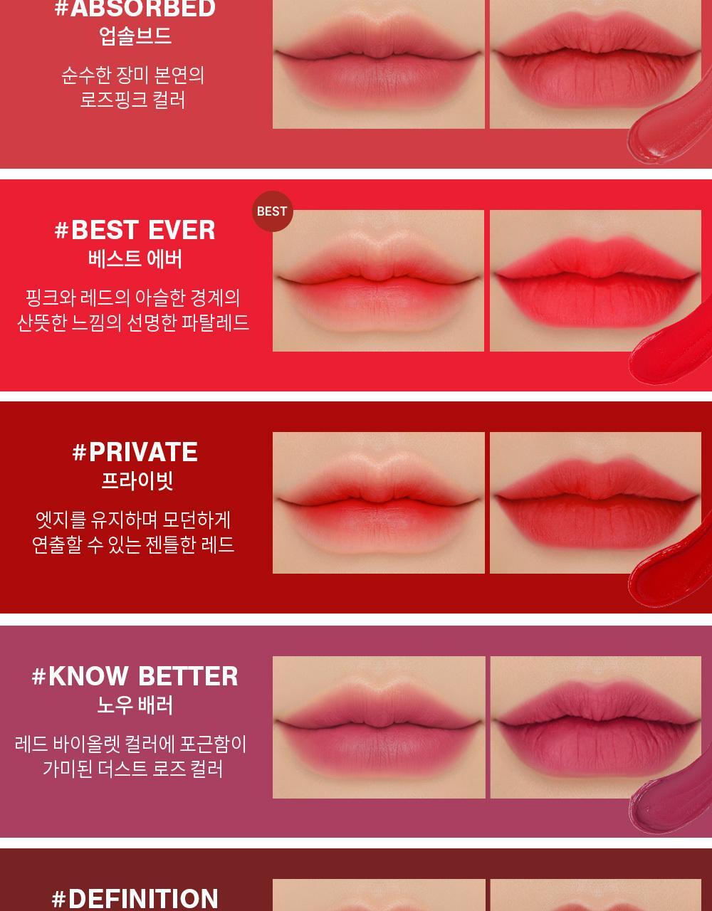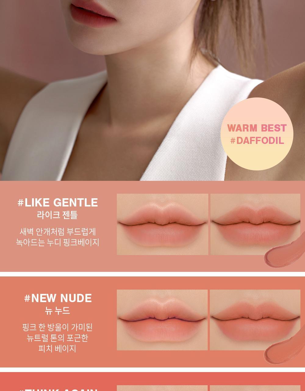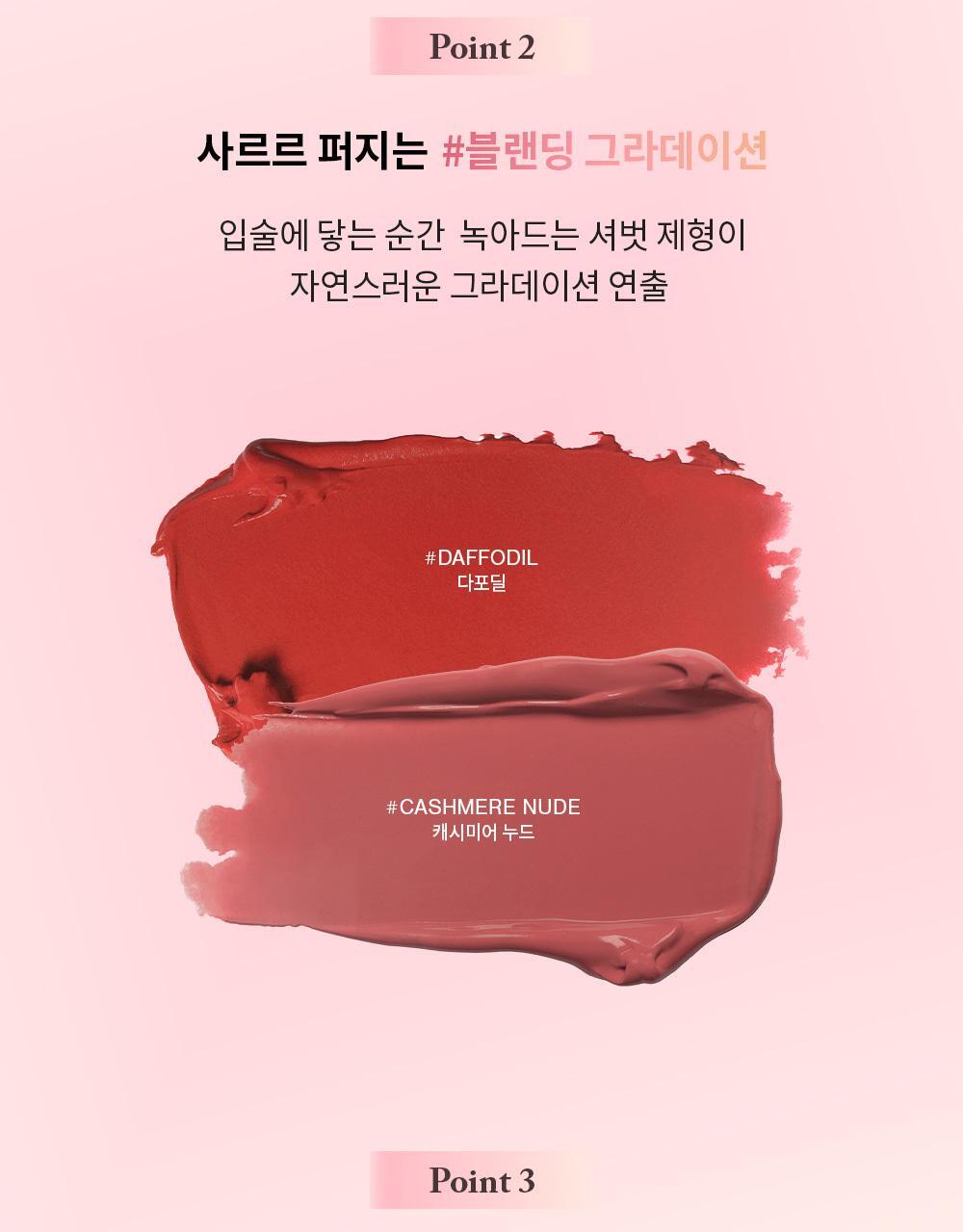 The elastomer inside the texture fills in fine wrinkles of lips and makes soft lips through perfect adherence. The sherbet texture melts as soon as touching on lips to make a gradient effect.
