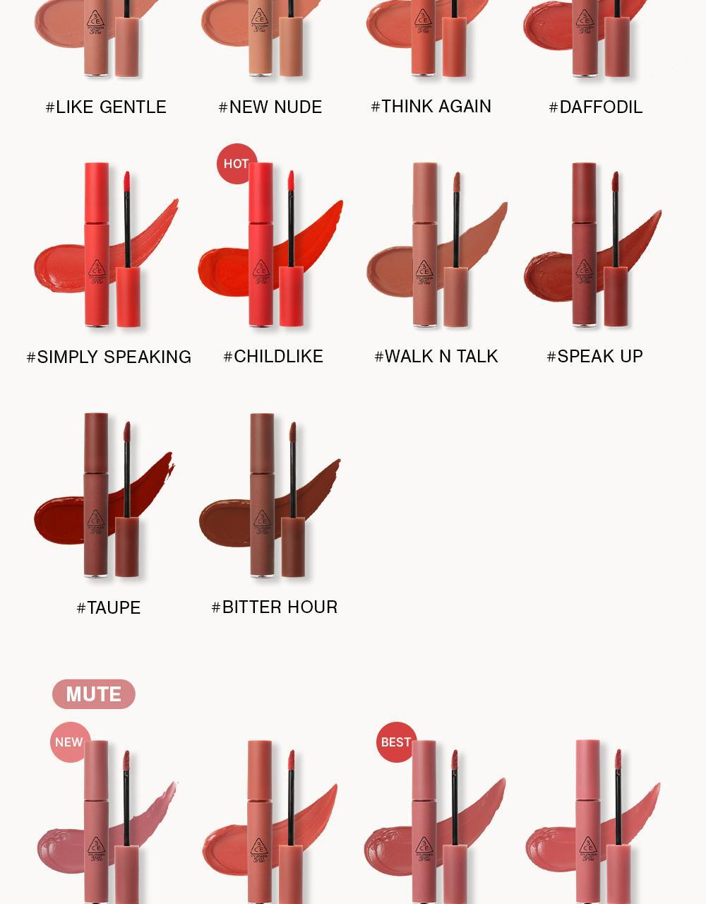 - Ingredients: ■ #CHILDLIKE Dimethicone, Cyclopentasiloxane, Dimethicone Crosspolymer, Dimethicone/Vinyl Dimethicone Crosspolymer, Polyglyceryl-2 Triisostearate, Isododecane, Sunset Yellow FCF, Cyclohexasiloxane, 1,2-Hexanediol, Disteardimonium Hectorite, Phenoxyethanol, Lithol Rubine BCA, PEG-10 Dimethicone, Tocopheryl Acetate, Tetrachlorotetrabromofluorescein, Propylene Carbonate, Caprylic/Capric Triglyceride, Helianthus Annuus (Sunflower) Seed Oil, Calendula Officinalis Flower Oil, Rosa Canina Fruit Extract, Rose Extract, Coumarin #PINK BREAK Dimethicone, Cyclopentasiloxane, Dimethicone Crosspolymer, Dimethicone/Vinyl Dimethicone Crosspolymer, Polyglyceryl-2 Triisostearate, Isododecane, Titanium Dioxide, Cyclohexasiloxane, 1,2-Hexanediol, Iron Oxide Red, Phloxine B, Disteardimonium Hectorite, Phenoxyethanol, PEG-10 Dimethicone, Tocopheryl Acetate, Propylene Carbonate, Tetrachlorotetrabromofluorescein, Iron Oxide Black, Caprylic/Capric Triglyceride, Helianthus Annuus (Sunflower) Seed Oil, Calendula Officinalis Flower Oil, Rosa Canina Fruit Extract, Rose Extract, Coumarin #DAFFODIL Dimethicone, Cyclopentasiloxane, Dimethicone Crosspolymer, Dimethicone/Vinyl Dimethicone Crosspolymer, Polyglyceryl-2 Triisostearate, Isododecane, Cyclohexasiloxane, Titanium Dioxide, Iron Oxide Red, Iron Oxide Yellow, 1,2-Hexanediol, Lithol Rubine BCA, Disteardimonium Hectorite, Phenoxyethanol, PEG-10 Dimethicone, Tocopheryl Acetate, Propylene Carbonate, Tetrachlorotetrabromofluorescein, Caprylic/Capric Triglyceride, Helianthus Annuus (Sunflower) Seed Oil, Calendula Officinalis Flower Oil, Rosa Canina Fruit Extract, Rose Extract, Coumarin #GOING RIGHT Dimethicone, Cyclopentasiloxane, Dimethicone Crosspolymer, Dimethicone/Vinyl Dimethicone Crosspolymer, Polyglyceryl-2 Triisostearate, Isododecane, Titanium Dioxide, Cyclohexasiloxane, Iron Oxide Red, 1,2-Hexanediol, Iron Oxide Yellow, Disteardimonium Hectorite, Phenoxyethanol, PEG-10 Dimethicone, Tocopheryl Acetate, Propylene Carbonate, Lithol Rubine BCA, Iron Oxide Black, Tetrachlorotetrabromofluorescein, Caprylic/Capric Triglyceride, Helianthus Annuus (Sunflower) Seed Oil, Calendula Officinalis Flower Oil, Rosa Canina Fruit Extract, Rose Extract, Coumarin #PRIVATE Dimethicone, Cyclopentasiloxane, Polyglyceryl-2 Triisostearate, Dimethicone Crosspolymer, Dimethicone/Vinyl Dimethicone Crosspolymer, Isododecane, Cyclohexasiloxane, Sunset Yellow FCF, 1,2-Hexanediol, Lithol Rubine BCA, Phloxine B, Disteardimonium Hectorite, Phenoxyethanol, Tetrachlorotetrabromofluorescein, PEG-10 Dimethicone, Tocopheryl Acetate, Propylene Carbonate, Caprylic/Capric Triglyceride, Helianthus Annuus (Sunflower) Seed Oil, Calendula Officinalis Flower Oil, Rosa Canina Fruit Extract, Rose Extract, Coumarin #NEAR AND DEAR Dimethicone, Cyclopentasiloxane, Dimethicone Crosspolymer, Dimethicone/Vinyl Dimethicone Crosspolymer, Polyglyceryl-2 Triisostearate, Titanium Dioxide, Isododecane, Cyclohexasiloxane, 1,2-Hexanediol, Iron Oxide Red, Disteardimonium Hectorite, Phenoxyethanol, Iron Oxide Black, PEG-10 Dimethicone, Tocopheryl Acetate, Propylene Carbonate, Phloxine B, Tetrachlorotetrabromofluorescein, Caprylic/Capric Triglyceride, Helianthus Annuus (Sunflower) Seed Oil, Calendula Officinalis Flower Oil, Rosa Canina Fruit Extract, Rose Extract, Coumarin #NEW NUDE Dimethicone, Cyclopentasiloxane, Dimethicone Crosspolymer, Dimethicone/Vinyl Dimethicone Crosspolymer, Polyglyceryl-2 Triisostearate, Titanium Dioxide, Isododecane, Cyclohexasiloxane, 1,2-Hexanediol, Iron Oxide Yellow, Iron Oxide Red, Disteardimonium Hectorite, Phenoxyethanol, PEG-10 Dimethicone, Tocopheryl Acetate, Iron Oxide Black, Propylene Carbonate, Tetrachlorotetrabromofluorescein, Caprylic/Capric Triglyceride, Helianthus Annuus (Sunflower) Seed Oil, Calendula Officinalis Flower Oil, Rosa Canina Fruit Extract, Rose Extract, Coumarin #SAVE ME Dimethicone, Cyclopentasiloxane, Dimethicone Crosspolymer, Dimethicone/Vinyl Dimethicone Crosspolymer, Polyglyceryl-2 Triisostearate, Isododecane, Cyclohexasiloxane, Tartrazine, Titanium Dioxide, 1,2-Hexanediol, Phloxine B, Disteardimonium Hectorite, Phenoxyethanol, PEG-10 Dimethicone, Tocopheryl Acetate, Propylene Carbonate, Tetrachlorotetrabromofluorescein, Caprylic/Capric Triglyceride, Helianthus Annuus (Sunflower) Seed Oil, Calendula Officinalis Flower Oil, Rosa Canina Fruit Extract, Rose Extract, Coumarin #TAUPE Dimethicone, Cyclopentasiloxane, Dimethicone Crosspolymer, Dimethicone/Vinyl Dimethicone Crosspolymer, Polyglyceryl-2 Triisostearate, Isododecane, Iron Oxide Red, Cyclohexasiloxane, 1,2-Hexanediol, Phloxine B, Iron Oxide Black, Disteardimonium Hectorite, Phenoxyethanol, Lithol Rubine BCA, PEG-10 Dimethicone, Tocopheryl Acetate, Propylene Carbonate, Tetrachlorotetrabromofluorescein, Caprylic/Capric Triglyceride, Helianthus Annuus (Sunflower) Seed Oil, Calendula Officinalis Flower Oil, Rosa Canina Fruit Extract, Rose Extract, Coumarin #BEST EVER Dimethicone, Cyclopentasiloxane, Dimethicone Crosspolymer, Dimethicone/Vinyl Dimethicone Crosspolymer, Polyglyceryl-2 Triisostearate, Isododecane, Phloxine B, Cyclohexasiloxane, Sunset Yellow FCF, 1,2-Hexanediol, Disteardimonium Hectorite, Phenoxyethanol, Tetrachlorotetrabromofluorescein, PEG-10 Dimethicone, Tocopheryl Acetate, Propylene Carbonate, Caprylic/Capric Triglyceride, Helianthus Annuus (Sunflower) Seed Oil, Calendula Officinalis Flower Oil, Rosa Canina Fruit Extract, Rose Extract, Coumarin #SPEAK UP Dimethicone, Cyclopentasiloxane, Dimethicone Crosspolymer, Dimethicone/Vinyl Dimethicone Crosspolymer, Polyglyceryl-2 Triisostearate, Isododecane, Iron Oxide Red, Cyclohexasiloxane, Phloxine B, 1,2-Hexanediol, Iron Oxide Black, Disteardimonium Hectorite, Phenoxyethanol, PEG-10 Dimethicone, Tocopheryl Acetate, Fragrance, Propylene Carbonate, Coumarin, Caprylic/Capric Triglyceride, Helianthus Annuus (Sunflower) Seed Oil, Tetrachlorotetrabromofluorescein, Calendula Officinalis Flower Oil, Rosa Canina Fruit Extract #SLOW MOTION Dimethi