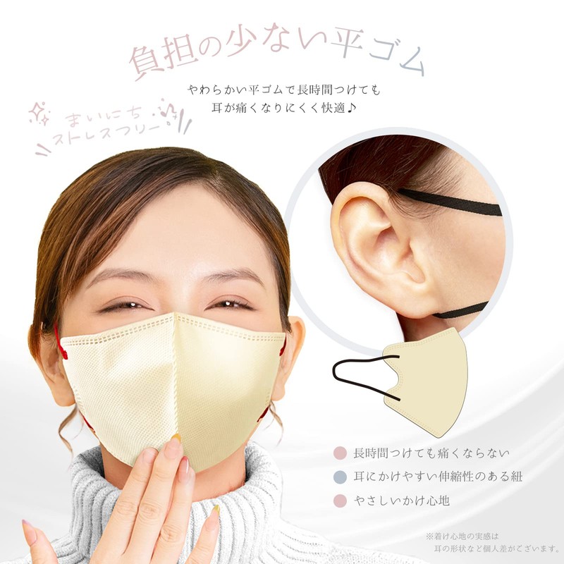 - 【耳が痛くなりにくい】幅6mmで柔らかく伸縮性抜群な耳紐を使用し、長時間の着用でも耳が痛くなりにくい。