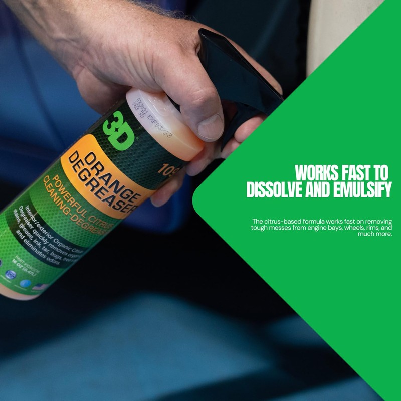 - ONE PRODUCT, BEST CLEAN 3D Orange Degreaser is a premium organic citrus all purpose cleaner safe and effective to clean many different interior and exterior surfaces!