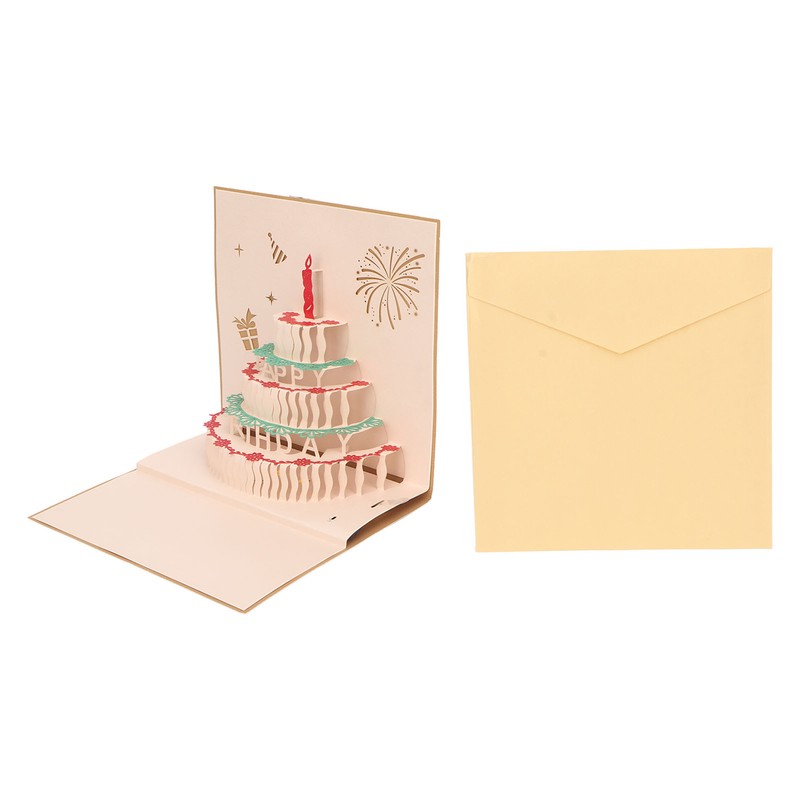 1、Foldable and Portable: 3D birthday cards can be folded repeatedly, which is convenient for storage and carrying, and can be easily carried in a backpack 2、Beautiful Artwork: Popup holiday card is not only a beautiful piece of art, but also plays birthday songs and also has a recording function 3、Paper Material: Popup birthday card is made of paper, which is environmentally friendly, reliable and can be used with confidence 4、Interesting and Attractive: The card is flat when folded, the cake model poping out when you open the card, creating a special warm sweet moment for someone special 5、Practical Gift: The birthday card comes with a blank envelope, there is enough space on the card for you to write warm wishes, messages and notes