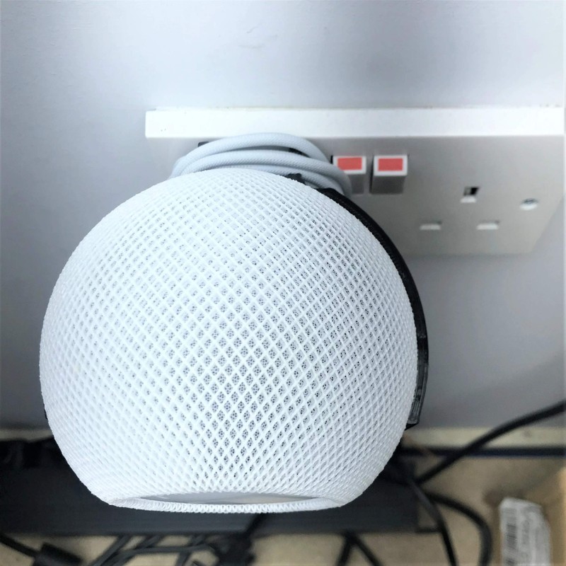Home Pod Mini UK 3 pin plug mount bracket. Mount your Home Pod in the simplest way without any dangling cables. Simply friction fits onto the top of your plug with a very firm and strong grip. Has added cable channels on the sides of the bracket so that cables can be easily managed and wrapped neatly around the plug, for the best and most practical look. Great for saving surface space. Ideal for kitchen counter top plugs. Keep device away from children.