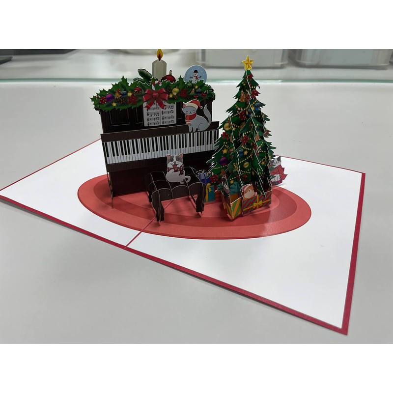 3d Christmas Pets and Piano Pop Up Card, Animal Christmas Pop Up Card, 3D Holiday Pop Up Christmas Card, Fun X'mas Card, 3d X'mas Greetings Cards, Merry Christmas Card For Son, Husband, X25