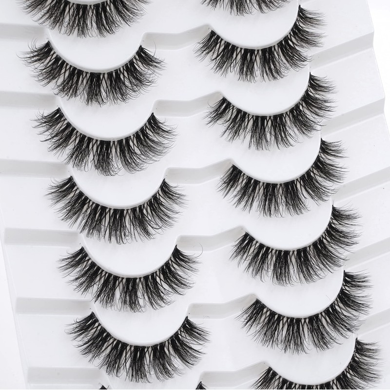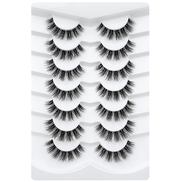 3D Clear Band False EyeLashes Natural Look Cat Eye Wispy Fake lashes Short Supernatural Cross Soft Reusable Lashes 7 Pairs-Happy Heartbeat(No.202)
