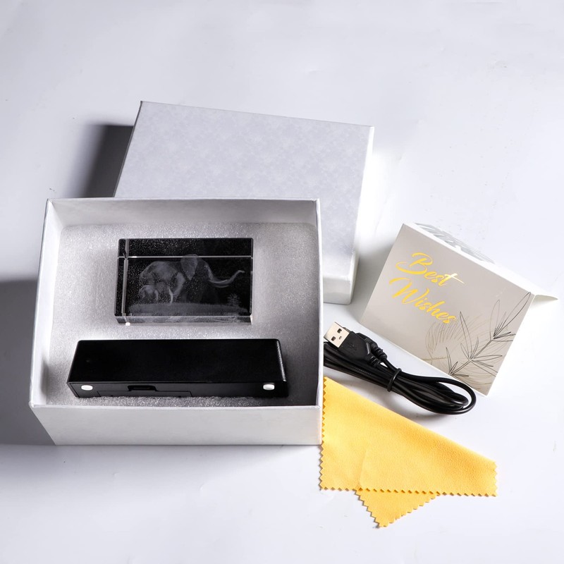 3D Crystal Gift Engraved Elephants Mother and Baby Glass Paperweight with LED Stand Birthday Gifts for Mum Daught Son Family Ornaments
