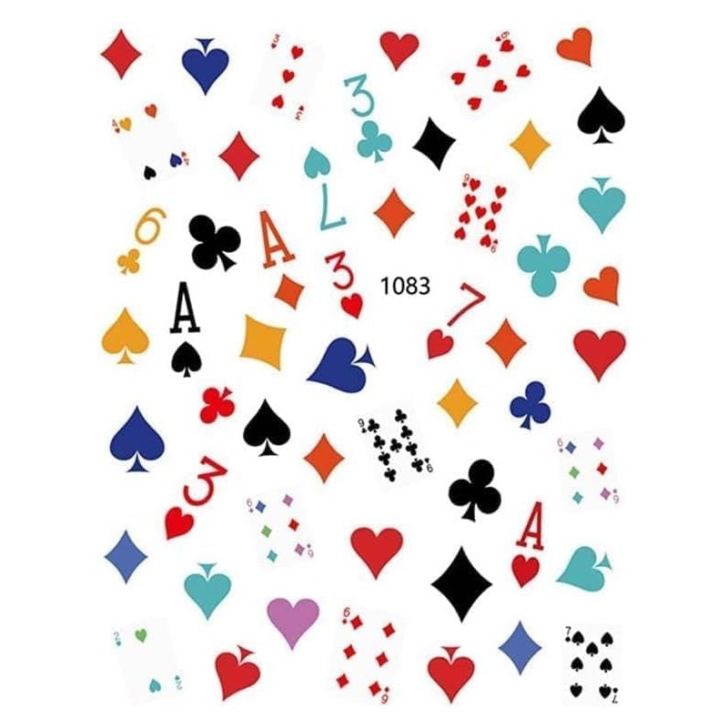 - PACKAGE CONTENTS: Multiple sheets of playing card themed nail art decals with various sizes and designs for complete manicure looks