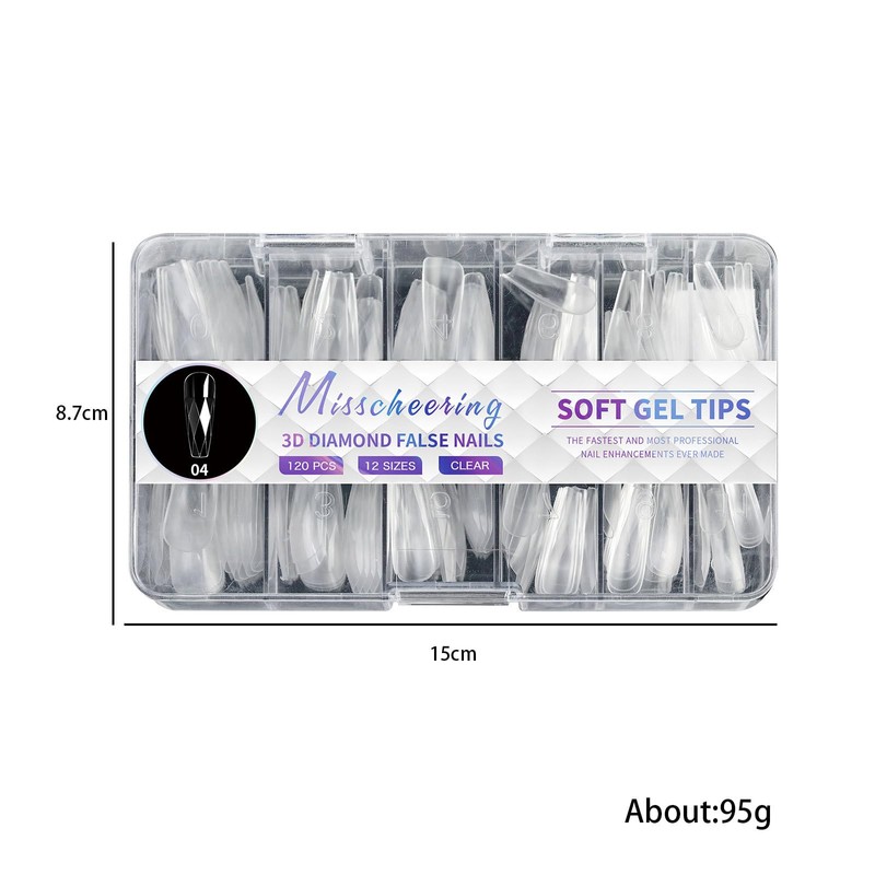 3D Diamond Nail Tips, 140Pcs Long Coffin Acrylic Fake Nails, Full Cover Press On Nails, Soft Gel Tips, No Filed Stronger Adhesion False Nails for Nail Extension, 14 Sizes