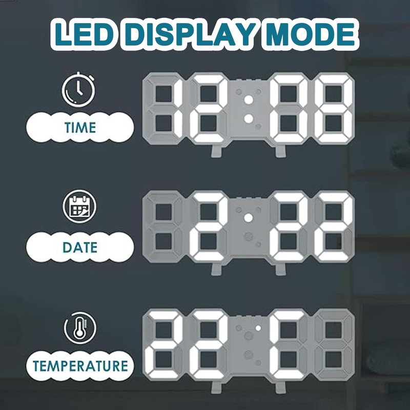 - 【Multifunctional LED Digital Wall Clock】LED screen automatically circulates time, date and temperature, 12 / 24-hour display function, three alarm clock modes, with wake-up function and automatic brightness adjustment function.