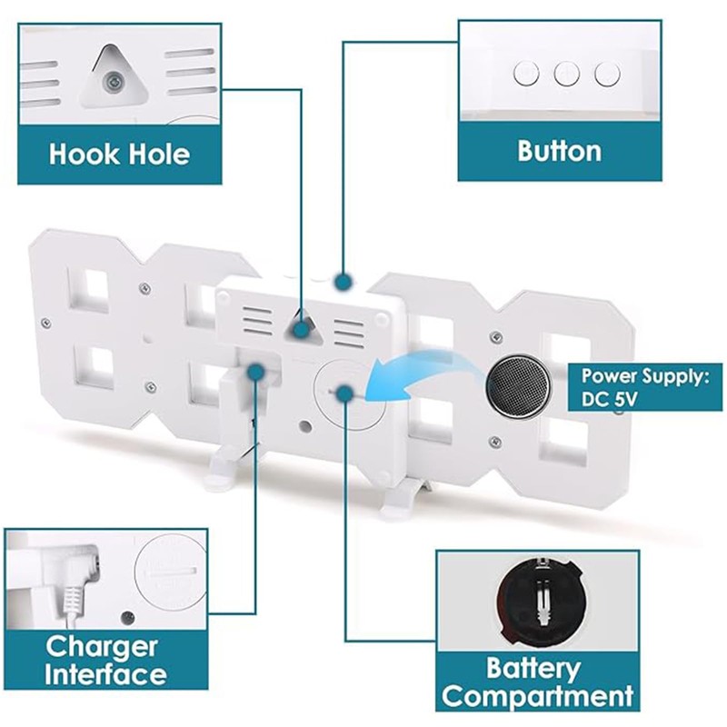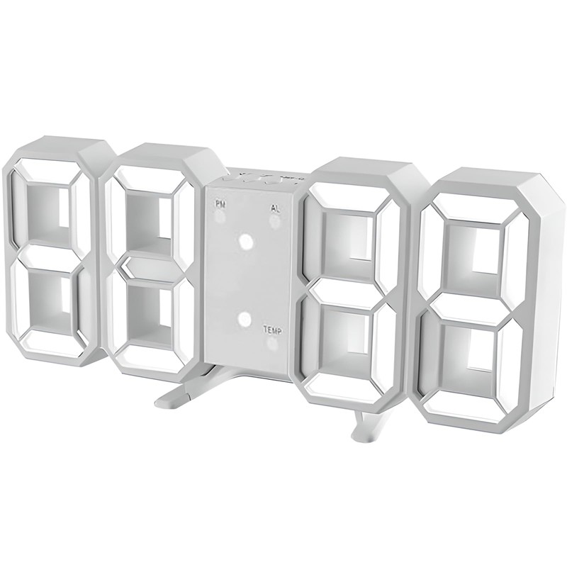 - 【Fashion Design】The 3D white digital clock modeling design is simple and generous. It is suitable for any place. It can decorate your place well. The installation and operation is convenient. You can easily fix the clock on the desktop and wall. First remove the base, and then find the installation slot on the back. It can also be placed directly on the desktop.