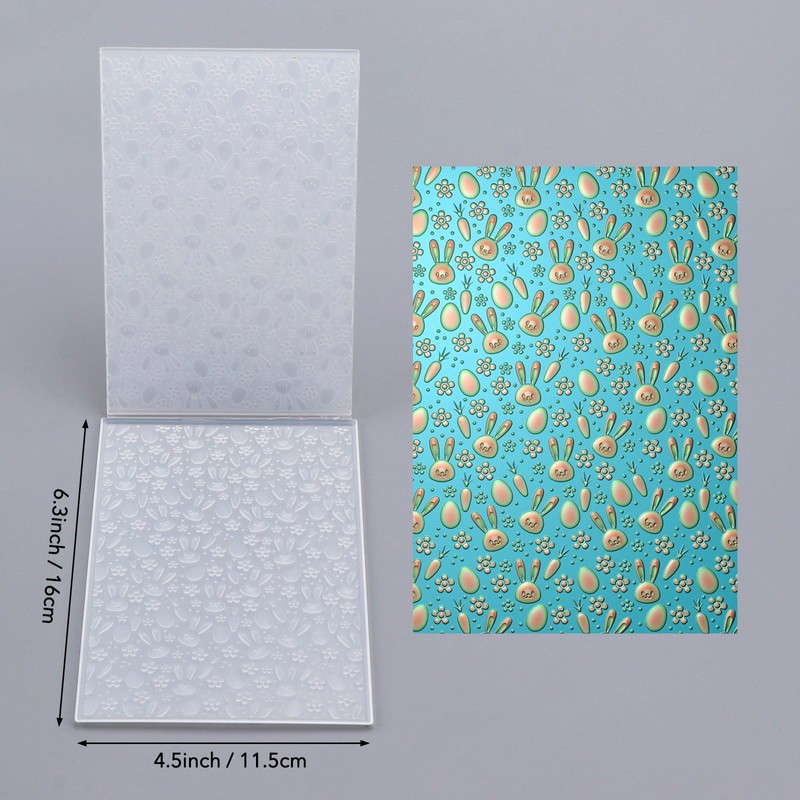 3D Embossing Folder Bunny Rabbits Easter Plastic Embossing Texture Fades Folders Template for Card Making Scrapbooking and Other Paper Crafts, Scrapbooking Paper Craft Album Stamps DIY Decor