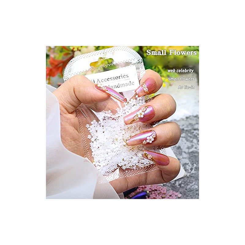 3D Flower Caviar Beads Nail Art Decals Charms for Nails, White Pink 3D Acrylic Flower Nail Charms with Pearl Golden Caviar Beads for Women DIY Manicures Salon Accessories