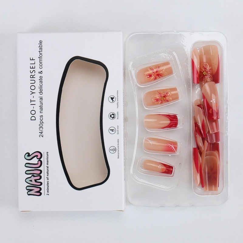 - Package Contents:You will receive 24pcs flower nails press ons,24pcs jelly glue,a nail file and a wooden stick.Easy to make a fashion floral press on nails,no need to buy other things,you can get the nail salon-like effect