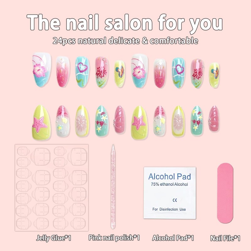 - Easy to Use: The cute starfish fake nails are easy to trim. It only takes 5 minutes to get your favorite fake nails. A few simple steps will make it easy for you to get the effect of doing a nail salon at home